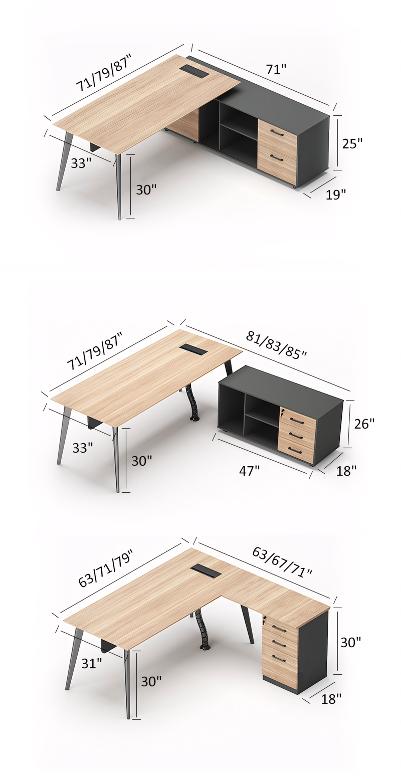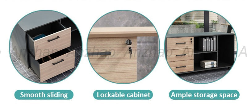 Used for storing files, folders, office supplies, equipment, or other work-related items